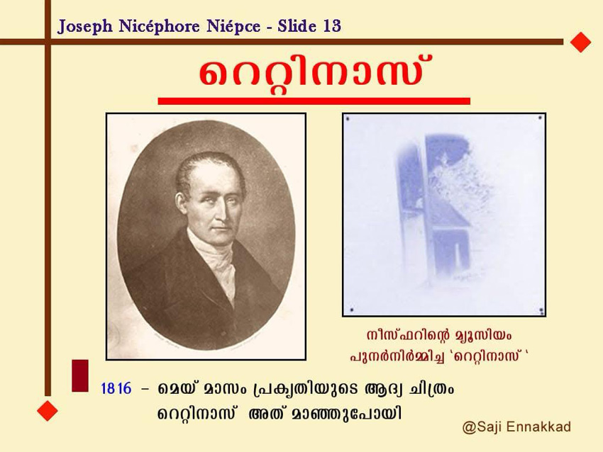 The “Retinas” shown in the slide is a later reconstruction created by scientists at the Musée Nicéphore Niépce, established in his memory.