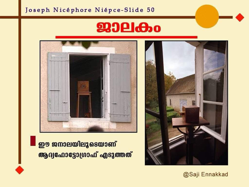 The window shown in the image is the very window through which the first photograph was taken — the historic opening that gave birth to photography.