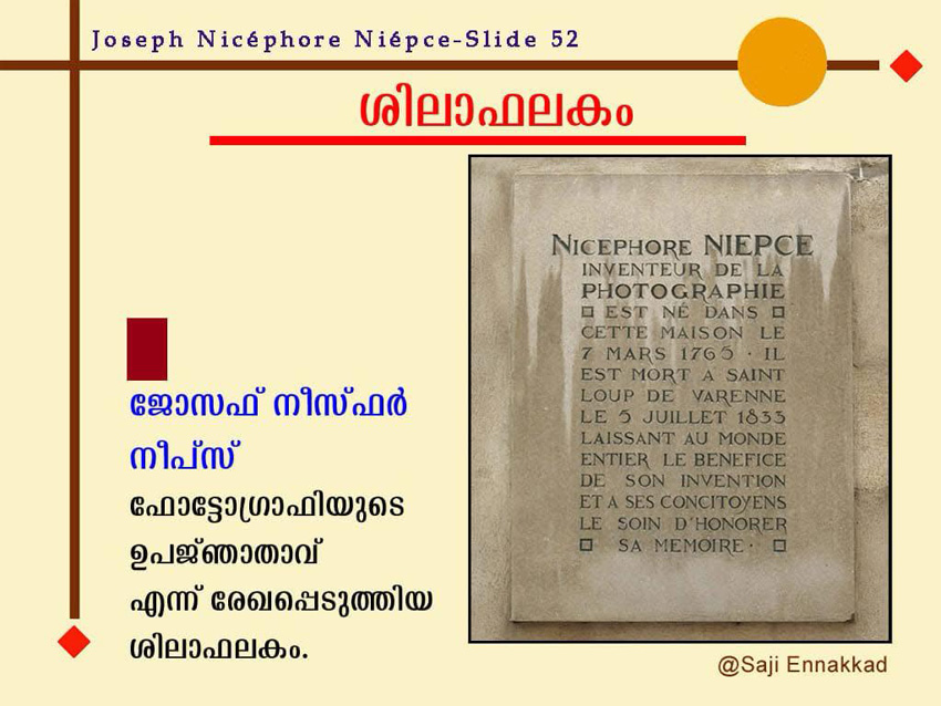 A commemorative plaque identifying Joseph Nicéphore Niépce as the Inventor of Photography.