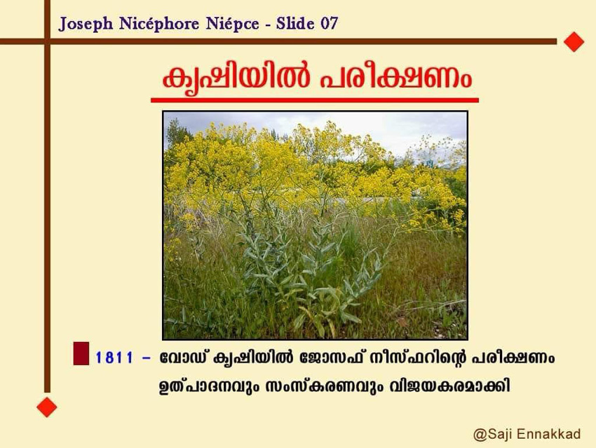 Fifty-six years later, in 1867, a historian who visited Niépce’s estate recorded that woad plants were still growing along the main road and in various parts of the property.