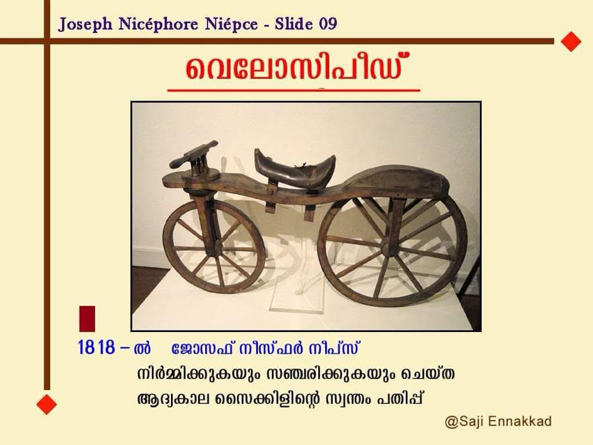 In 1818, Joseph Nicéphore Niépce built a velocipede, which created great curiosity at the time.